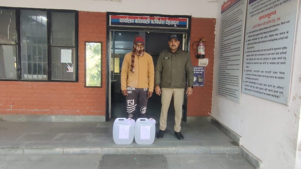 ऋषिकेश / मंगलवार/ आज अवैध शराब की बिक्री ,तस्करी व शराब तस्करों के विरुद्ध कार्यवाही के अनुपालन में गठित पुलिस टीम के द्वारा आज दिनांक 10 जनवरी 2023 को मुखबिर खास की सूचना पर नंदू फार्म तिराहे के पास से एक व्यक्ति को 40 लीटर कच्ची शराब के साथ गिरफ्तार किया गया। अभियुक्त के विरुद्ध आबकारी अधिनियम के अंतर्गत अभियोग पंजीकृत किया गया है।