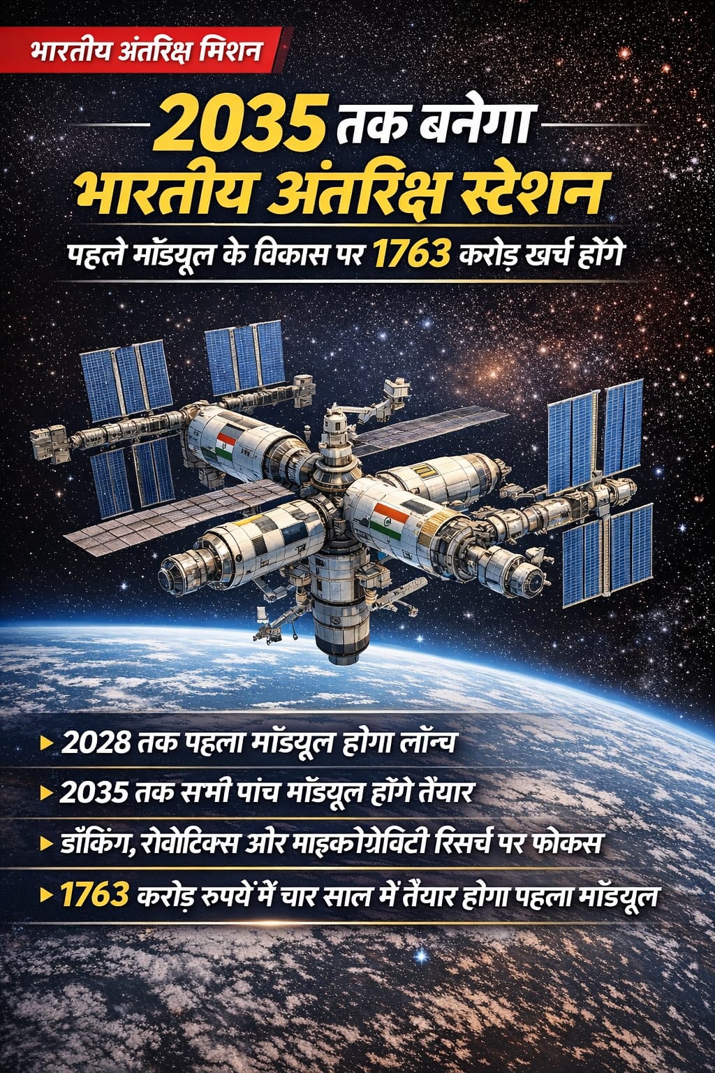 2035 तक बनेगा भारतीय अंतरिक्ष स्टेशन, पहले मॉड्यूल के विकास पर 1763 करोड़ खर्च होंगे