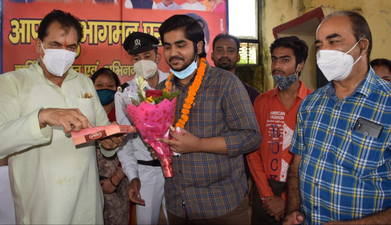 आईसीएसई बोर्ड की 12वीं परीक्षा में 97.8 फीसदी अंक प्राप्त कर ऋषिकेश को टॉप करने वाले कृष्णांश गोस्वामी को उत्तराखंड विधानसभा अध्यक्ष प्रेमचंद अग्रवाल ने सम्मानित किया।