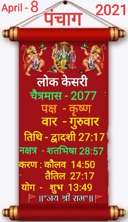 Aaj ka panchang (आज का पंचांग ) panchang पंचांग दिन गुरुवार 8 April 2021, Haridwar – Uttarakhand