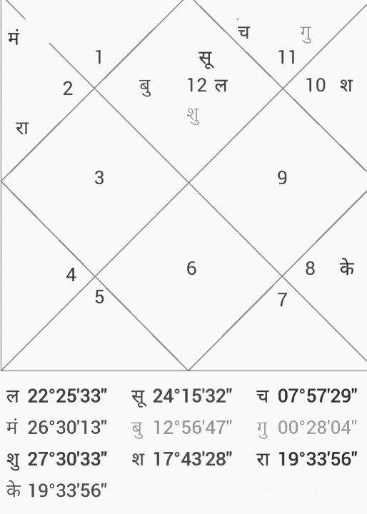 सूर्य -मीन राशि ,चंद्र -कुंभ राशि ,मंगल -वृष राशि, बुध मीन राशि,गुरु-कुंभ राशि , शुक्र – मीन राशि, शनि -मकर राशि,राहु -वृषभ राशि ,केतु -वृश्चिक राशिy