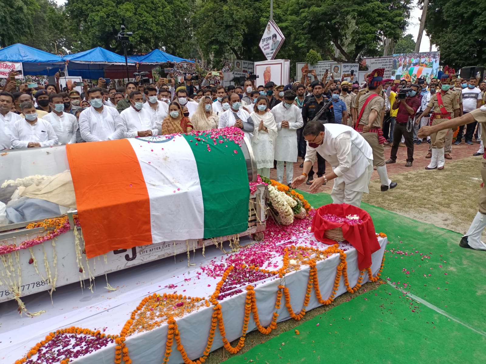 मुख्यमंत्री पुष्कर धामी ने पूर्व मुख्यमंत्री कल्याण सिंह के अंतिम संस्कार में शामिल होकर उन्हें दी श्रद्धांजली