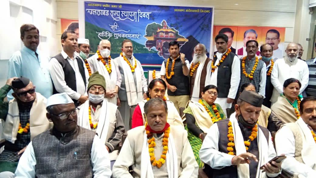 राज्य स्थापना दिवस पर कांग्रेसियों ने किया वरिष्ठ आंदोलनकारियों का सम्मान