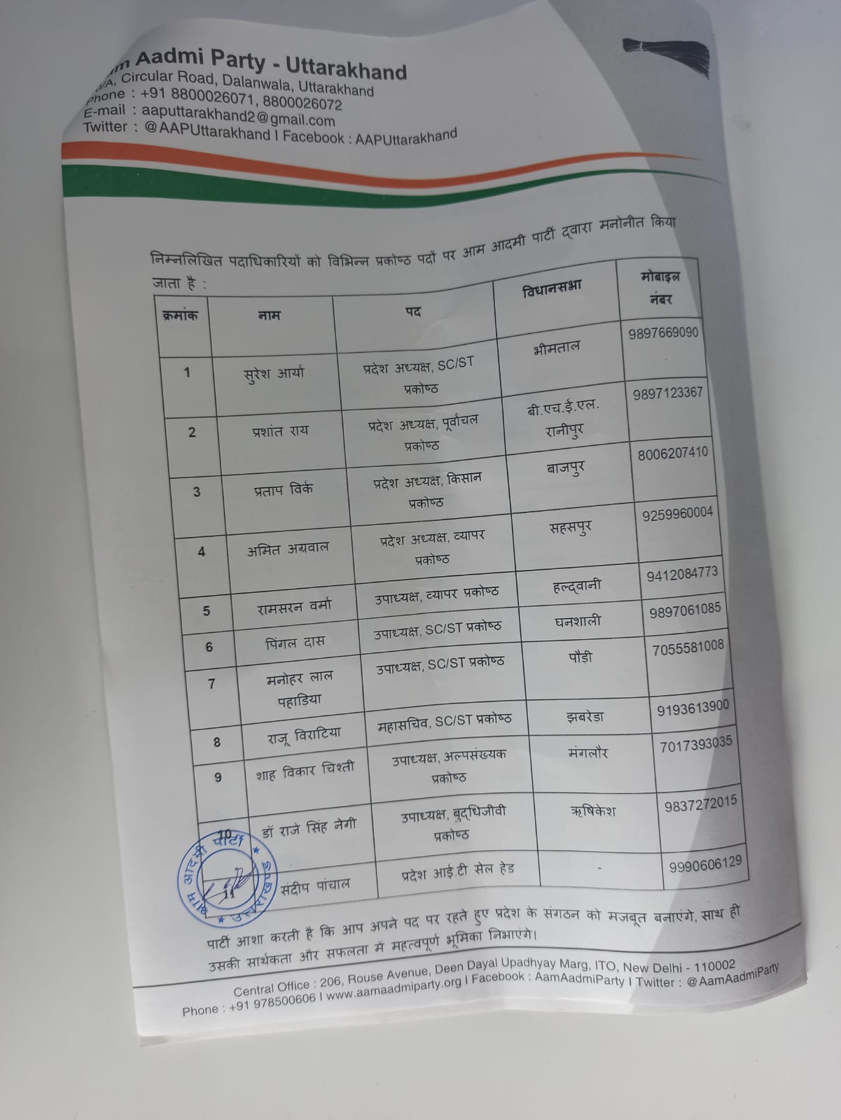 उधर पार्टी के प्रांतीय नेतृत्व की संस्तुति पर डॉ राजे नेगी एवं विजय पंवार को मिली नयी जिम्मेदारी पर पार्टी के संगठन मंत्री दिनेश असवाल, पार्टी जिलाध्यक्ष अमित बिश्नोई, दिनेश कुलियाल, विनायक गिरी,विक्रांत भारद्वाज, मनमोहन नेगी, गणेश बिजल्वाण, गुरुप्रीत सिंह, राजेन्द्र जुगरान,पंकज गुसाईं,रजनी कश्यप,अनु पांडेय, योगाचार्य भारती, प्रवीन असवाल,शुभम रावत,अमन नोटियाल,जय प्रकाश भट्ट, सुनील सेमवाल,लोकेश तायल,संजय सिलस्वाल,चन्द्र मोहन भट्ट,नरेंद्र रावत,अंकित नैथानी मयंक भट्ट,सुनील थापा, अजय रावत,सुरेश धमान्दा,रजत गुप्ता आदि ने हर्ष जताया है।