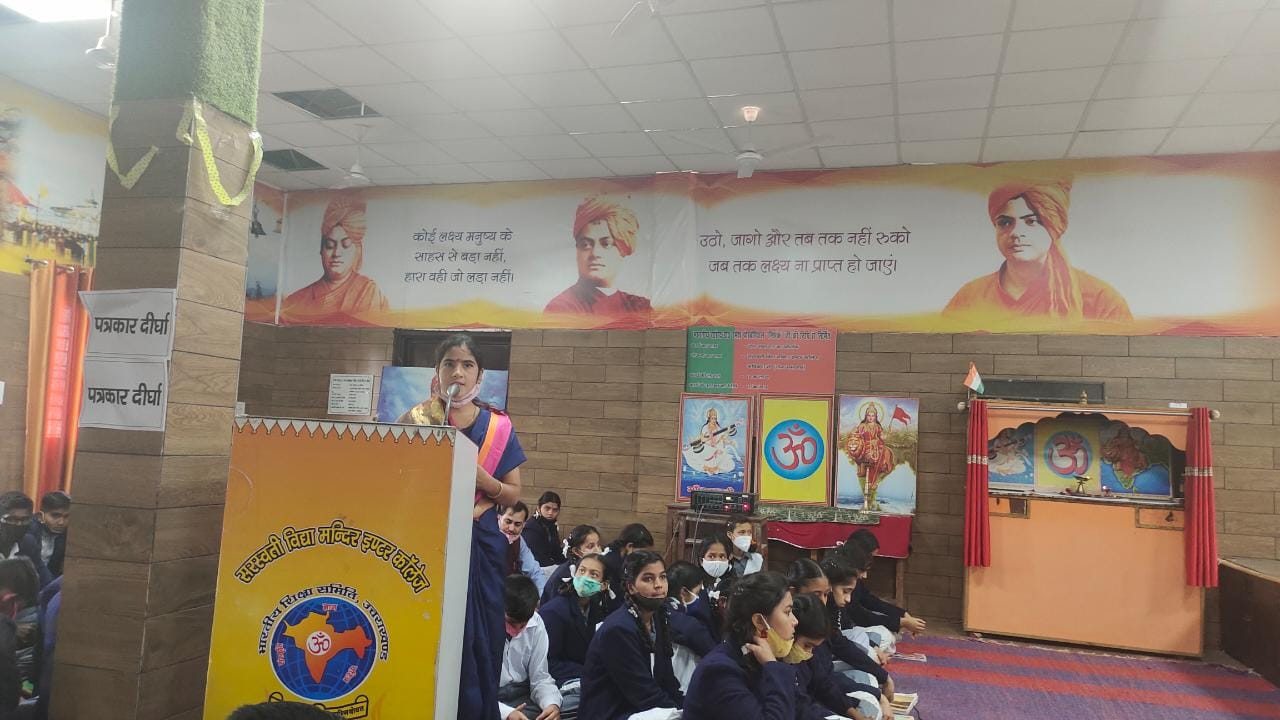 कार्यक्रम में विद्यालय के प्रधानाचार्य राजेंद्र प्रसाद पांडे ने सभी को महिला दिवस की शुभकामनाएं दी ओर बताया कि आज महिलाएं किसी भी क्षेत्र में पीछे नहीं है। आज की नारी हर कार्य को कर रही है हमे ऐसे वर्तमान में अनेको उदाहरण देखने को मिलते है,एवं महिला करुणामयी व क्षमायाचक भी है,इसलिए हमें महिलाओं का सम्मान करना चाहिए।