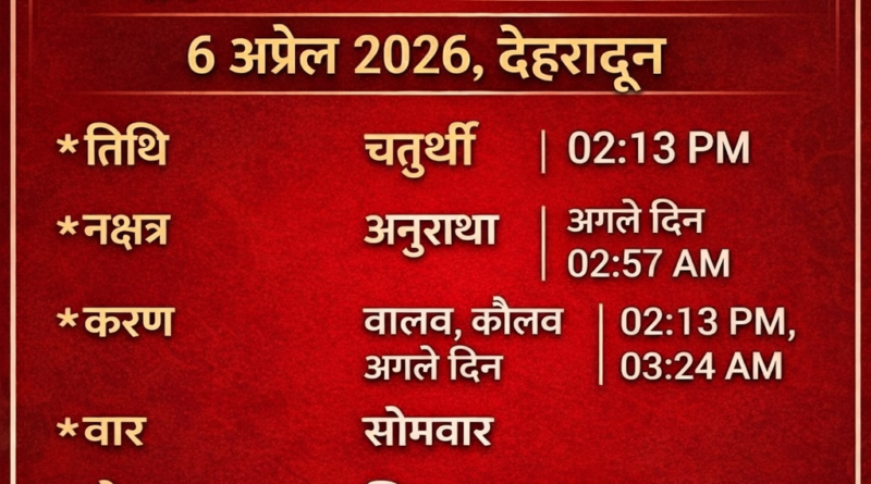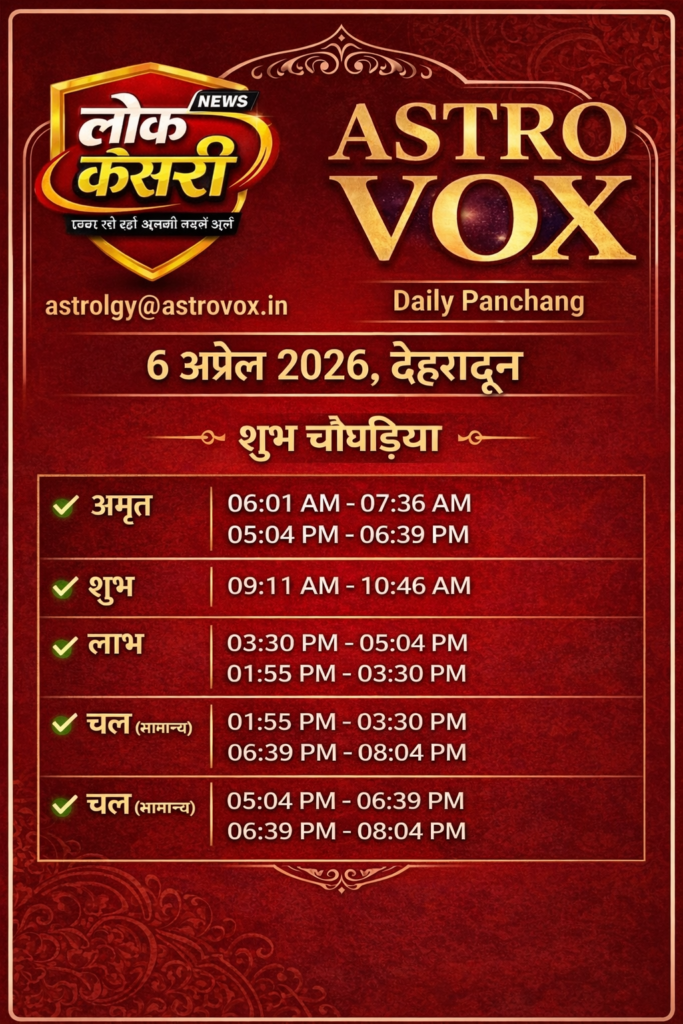 सोमवार 6 अप्रैल 2026 (देहरादून) के चौघड़िया में से शुभ माने जाने वाले चौघड़िया ये हैं: