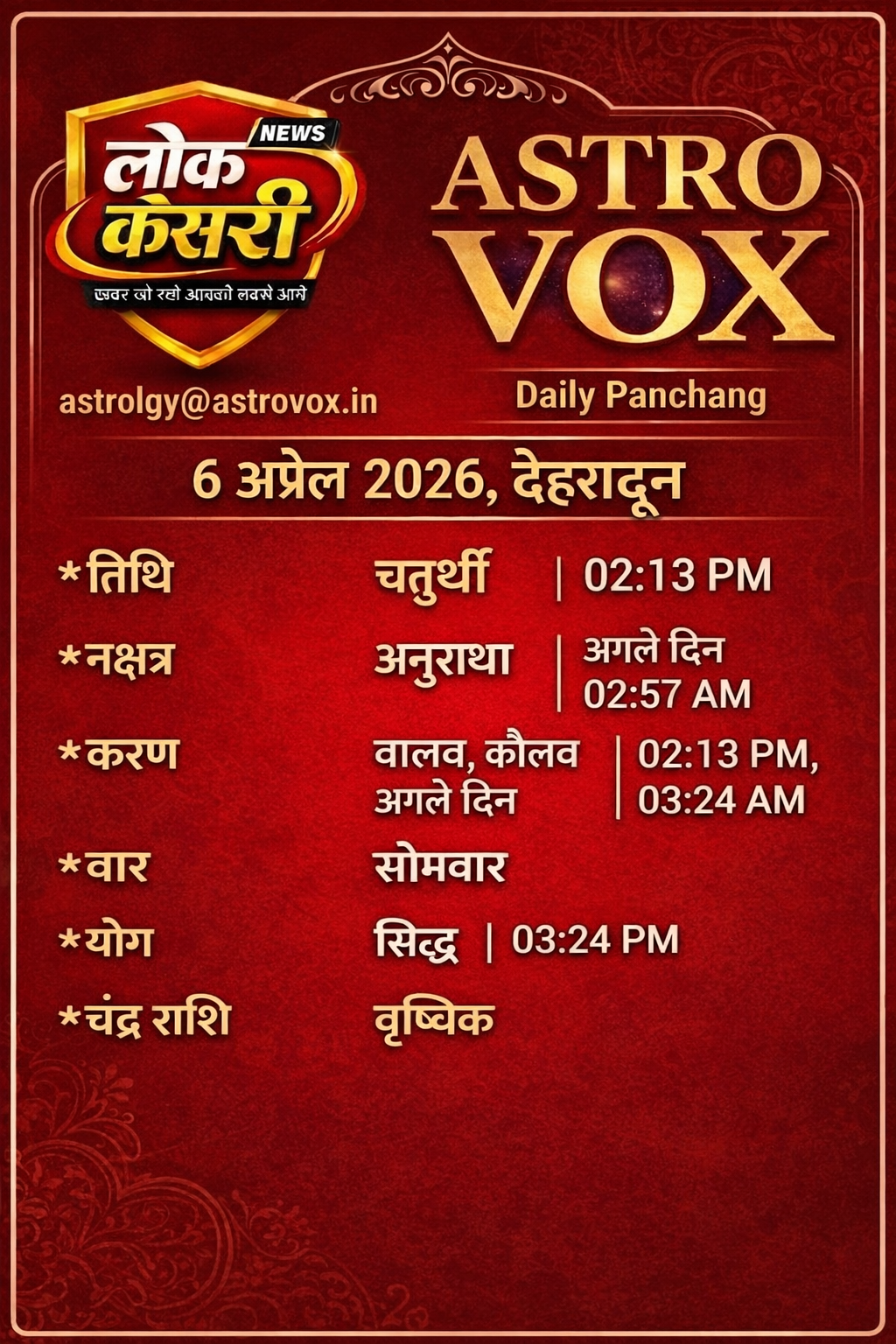 Lok Kesari Update:Astro Vox Panchang