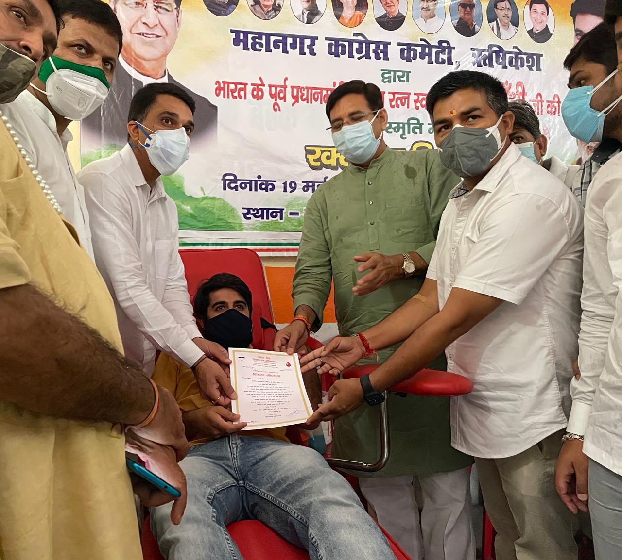 प्रदेश कांग्रेस उत्तराखण्ड के अध्यक्ष प्रीतम सिंह के निर्देश पर भारत रत्न पूर्व प्रधानमंत्री राजीव गांधी की पुण्य तिथि को स्वास्थ्य सप्ताह के रूप में मनाया जा रहा है। उसी परिपेक्ष में आज ऋषिकेश में भी नगर कांग्रेस कमेटी द्वारा भी रक्तदान शिविर का आयोजन रेलवे रोड स्थित कांग्रेस भवन में किया गया। जिसमें मुख्य अतिथि के रूप में कांग्रेस प्रदेश अध्यक्ष प्रीतम सिंह ने शिरकत की तथा 30 से अधिक लोगों ने रक्तदान किया ।