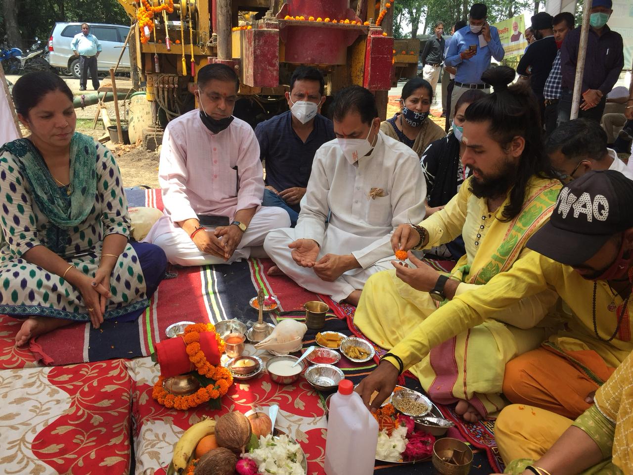 विश्व बैंक पोषित अर्द्धनगरीय क्षेत्र की ऋषिकेश देहात पेयजल योजना के अंतर्गत प्रगति विहार, इंदिरा नगर, नेहरू ग्राम, टीएचडीसी के लिए नलकूप हेतु भूमि पूजन कार्यक्रम का शुभारंभ उत्तराखंड विधानसभा अध्यक्ष प्रेमचंद अग्रवाल ने विधिवत पूजा अर्चना के संग नारियल फोड़कर किया।