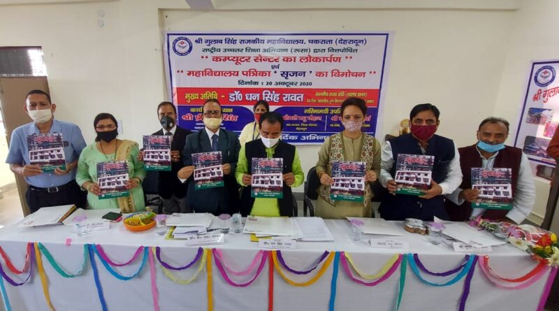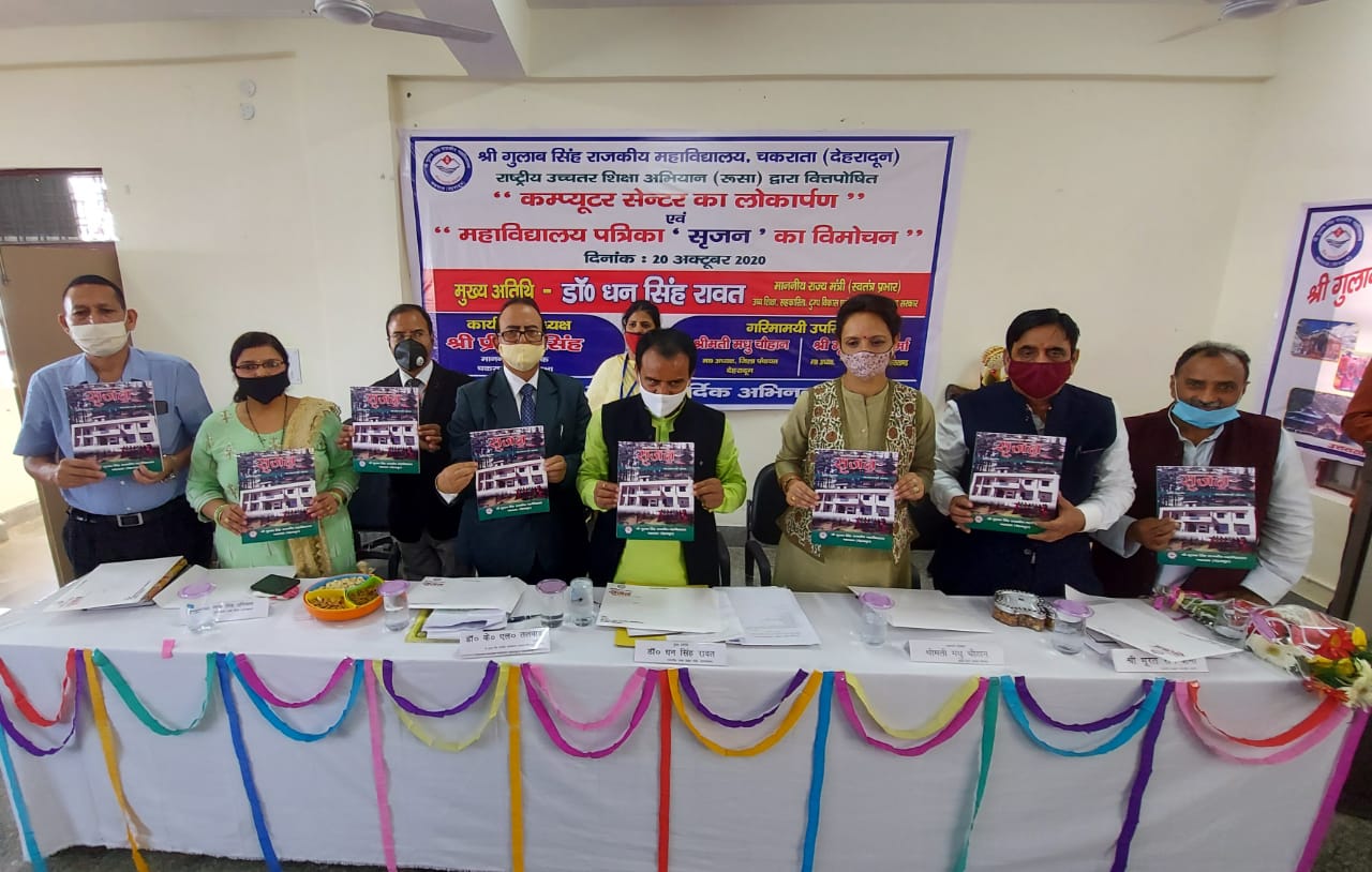 हरिद्वार(संजय राजपूत ) उच्च शिक्षा मंत्री डा.धन सिंह रावत ने श्री गुलाब सिंह राजकीय महाविद्यालय चकराता की पत्रिका “सृजन” के तृतीय संयुक्ताक का विमोचन किया।उन्होंने कहा कि पत्रिका में प्रकाशित विद्यार्थियों के लेख व कविताएं उनकी अभिव्यक्ति की क्षमता को विकसित करने का सशक्त माध्यम है।