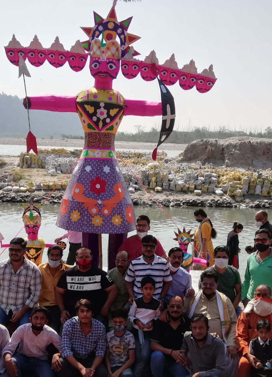 प्रत्येक वर्ष त्रिवेणी घाट आईडीपीएल लक्ष्मण झूला सहित आसपास के क्षेत्रों में दशहरे का पर्व धूमधाम से मनाया जाता है। मगर इस वर्ष कोरोना की वजह से सभी कार्यक्रम स्थगित रहे। मगर सुभाष क्लब दशहरा कमेटी के सदस्यों ने परंपरा का निर्वहन जरूर किया। कमेटी के सदस्यों ने त्रिवेणी घाट पर 10 फुट का रावण 3 फुट का कुंभकरण और 3 फुट का मेघनाथ बनाया। मौके पर विधि विधान से पूजा करने के बाद पुतलों को गंगा में विसर्जित कर दिया गया।